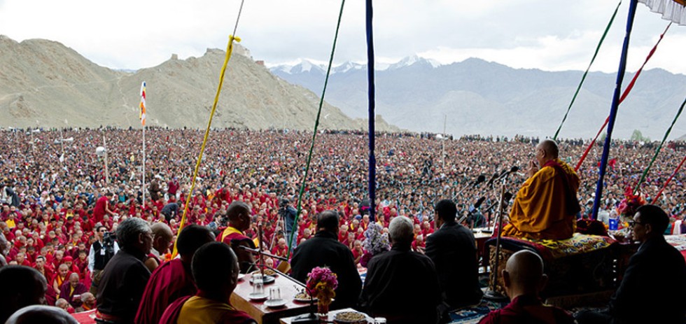 gathering of Buddhists and non-Buddhists alike to listen and meet His Holiness.